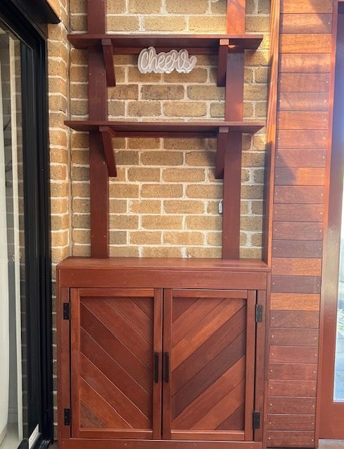 We built an extended outdoor entertaining area. A warm space that connects our dining, garage and backyard. Somewhere where we can relax, read, sip wine, and or have cold drinks soaking up the sun during summer, and still be able to utilise the space in winter.