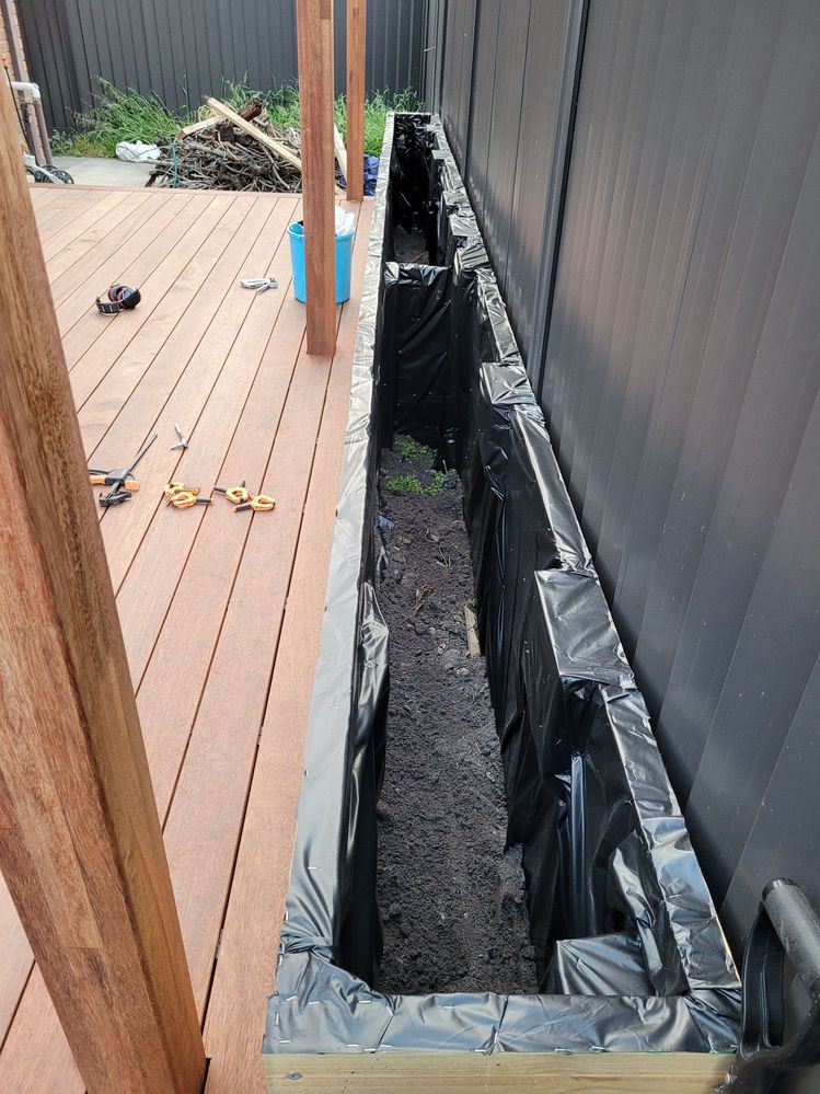 Next, I finished the side panelling, added LED strips to the side panelling of the first tier and built the raised garden bed for the main deck level using sleepers. I used some pond liner to line the raised garden bed to reduce the time of decay of the sleepers and to prevent moisture and sand from falling through the gaps where the wood isn't perfectly flush.