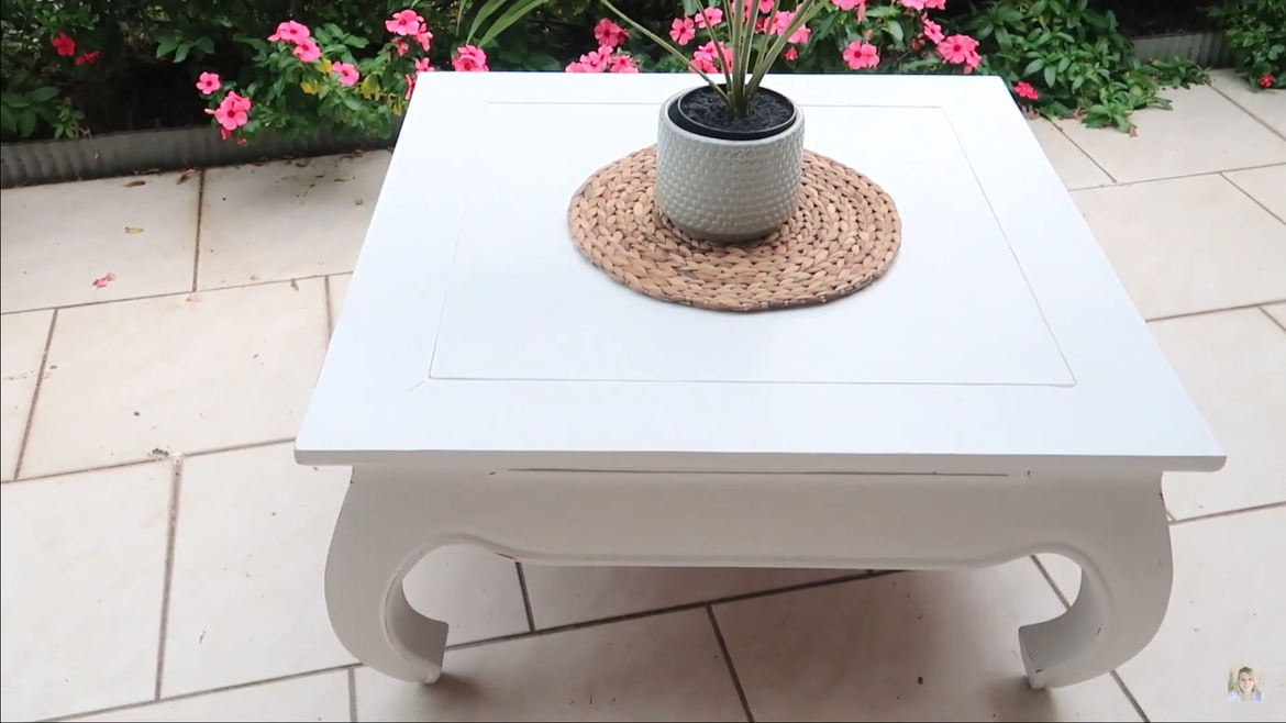 I bought this coffee table for just $20 on Facebook Marketplace. I wanted it to match my other outdoor furniture and I thought I would experiment and make my own chalk paint. This was my first time using chalk paint so I didn't really know what the texture was supposed to be, but it was so easy to make and gorgeous to use.