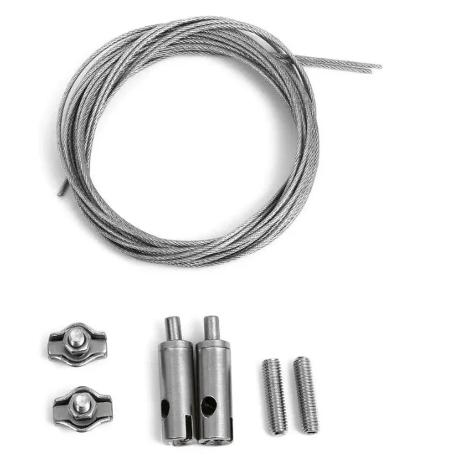 That appears to be a very specific system for that particular light. Our wire rope is designed for balustrading on a fence, so it doesn't come with the required fittings.