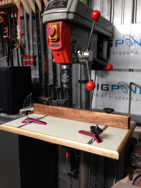 A pedestal Drill Press is a commonly used tool in Woodworking, however, the standard steel table (round or square) is great for working with steel but less than desirable when working with lengths of wood.