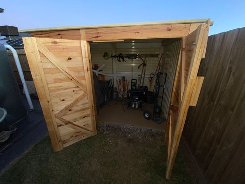 Garden shed made from scrap carport materials