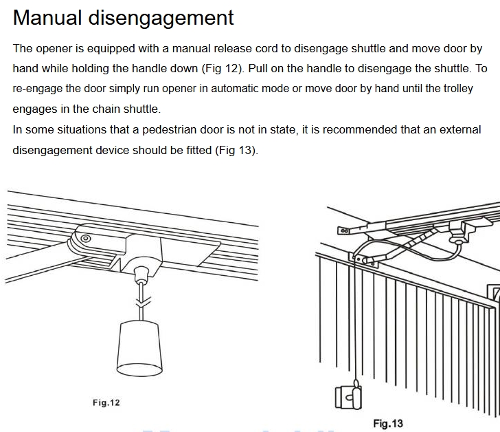 I suspect that you have activated the manual release mechanism of your garage door. I've placed a copy of the instructions on how to re-engage the trolley to the chain shuttle. If it fails to re-engage, I suggest calling the service number printed on the I.D. tag of the garage door opener.