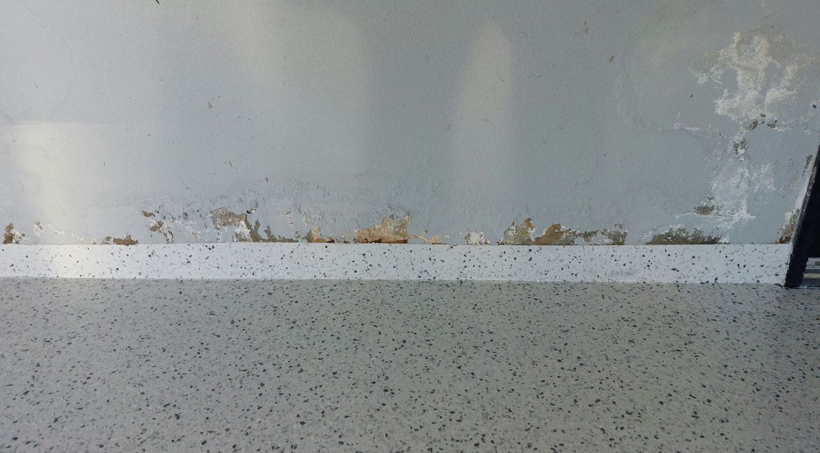 For visual effect, I have decided to board over the bottom half on my paint damaged garage internal wall with shiplap. We have had damp problems moreso on one side of the garage, as pictured on the rendered wall. I am thinking the moisture is coming from outside, where we have approx 3mts concrete path with steps to a metre high, with expansion tape installed alongside the house. When it rains heavily, I am guessing the water is entering via the gap below the expansion tape? I only thought about the outside recently, and am wondering if the above sounds logical? Could the rain saturate the ground under the expansion tape, creating moisture on the internal single brick rendered walls? Apparently, all was waterproofed when the house was built, but who knows? Question 1. If I were to use expanding silicone, and put the expansion tape back in if possible, would this create enough barrier to prevent water coming into the garage (if my guess is correct)? Its a single brick, rendered wall. Our home is built utilising the natural slope of the land wherever possible using steps. Some parts of the wall externally, have the pathway and steps around 11/2 mt plus higher than the garage floor, and down to almost around 20cm as the level changes in other sections. Where most of the moisture has come in, coincides with the height of the section outside from what I can see. For the most part, I am guessing the water saturates the ground and finds the exit point and saturates the bricks? The damp areas tends to start at the ground level, and some areas have crept up the wall in other sections. We have recently epoxied the floor, including 100mls up the wall, hoping to create a moisture barrier inside the garage where the concrete meets the walls. I guess this is the easiest point of water causing damage .. where the wall meets the concrete. We now have the preexisting issue of the flaking paint and/or fluorescence on the rendered wall. Question 2. If I remove all the flaking or damaged paint (but not all the paint on the wall) and treat with a moisture product in the affected areas, install flexible silicone outside, will this help my problem? The shiplap will be attached to timber framework, with a 3cm gap around the whole base, so air can circulate? Question 3. Do I use a sander or grinder to remove the flaking, damaged paint? If so, what grit do I purchase to do the wall? Is removing all the paint from the walls necessary, or can I do the affected areas only? The height of the shiplap will be 1.5m height with a negative damp product (was recommended, Crommelins DampStop), so hoping someone can help answering my questions before I go to a lot of trouble? Thankyou.floor level.