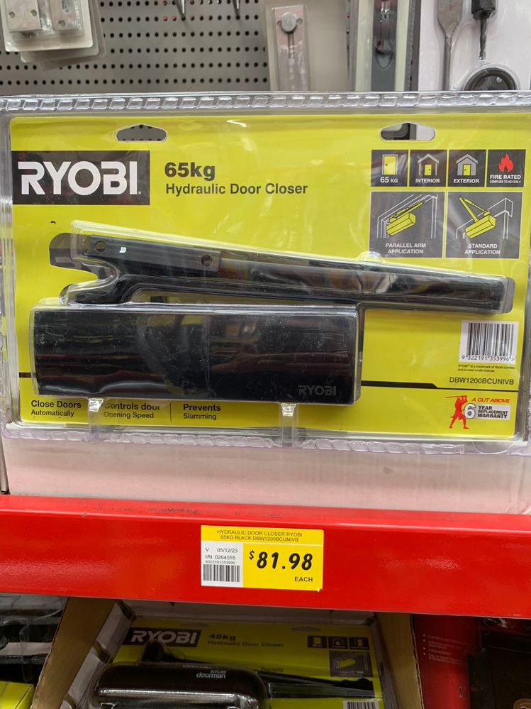 I recently purchased the Ryobi Door Closer (65kg) to be fitted to the metal / glass door located at the rear of my garage to stop the door from slamming.