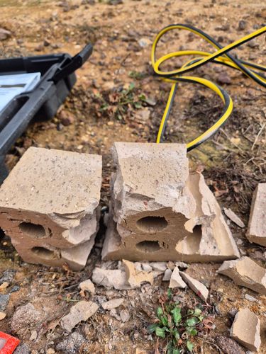 From literally drill thousands of holes into masonry in my lifetime I can pretty much guarantee that the wall bricks will not break apart like the single standalone test one. When you drill into standalone bricks the hammer drill bit almost acts like a powered chisel especially if your drill near and edge.