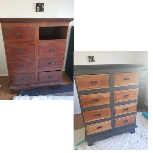 This draws are the ones I used that paint I'm asking about. Sand them all back to bare wood with ozito orbital sander and I applier a clear coat on draws, I think its monocel brand.