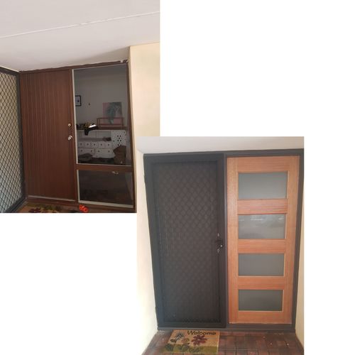 And this is our front door which we took the glass off, put a door on it and paint the previous door. It was our first carpentry progect we even broke out Robi circular saw doing it(and we could not find the receipt 🤦🏻♀️)