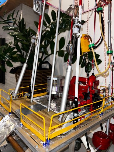 The engine is a toy but the other equipment like the Mud pump,Drillers cabin,Stand pipe & manifold,BOP,Annular,Gantry BOP Lifting beam/device was all hand made using parts from Bunnings,I have tried to use more of aluminium,so that it is easy for me to work with my hands,most of my words are technical oil and gas abbreviations ,which are typical names used in the oil-Gas and Geothermal industry ,where I spent 35 long years.