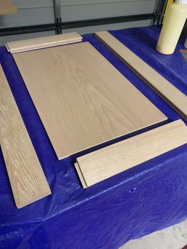 Door assembly using solid red oak for the rail & stiles. I've never worked with red oak before &