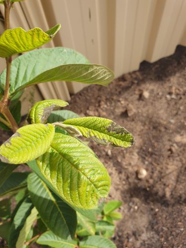 I just recently planted an Indian Guava into the yard, and 1 week later im noticing the leaves are starting to brown and the leaves seem to be a patchy green. I have alkaline soil, and prior to planting mixed it with compost, and added sulphur. Im still looking to add sugar cane mulch and another mulch on top. When planted, it got a spray of seasol, and has maybe been watered every 2-3 days. Prior to this is was looking super healthy in its pot, got a bit of water everyday but was getting probably half of the sun it gets now. We've also had a fairly warm, sunny week. The soil currently seems to be fairly moist still. Any thoughts are greatly appreciated.