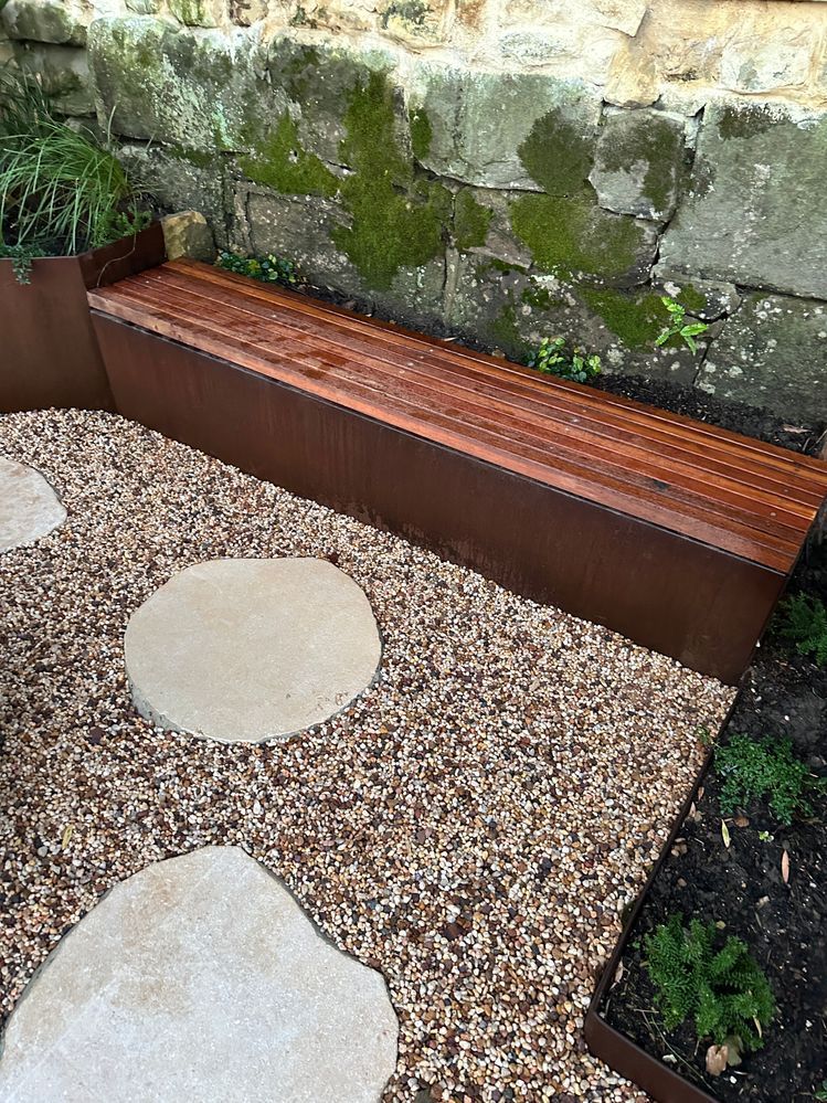 I searched everywhere online but could not find any designs or how to’s for a bench seat for a Corten steel planter box. In the end, I designed something myself.
