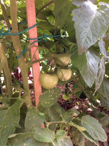 My tomatoes amongst other herbs ! Slight crowding due to my amateur planting!