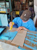 Jack painted the ply and we put it together with wood glue and nails. He used some screws to add his own personal touches.