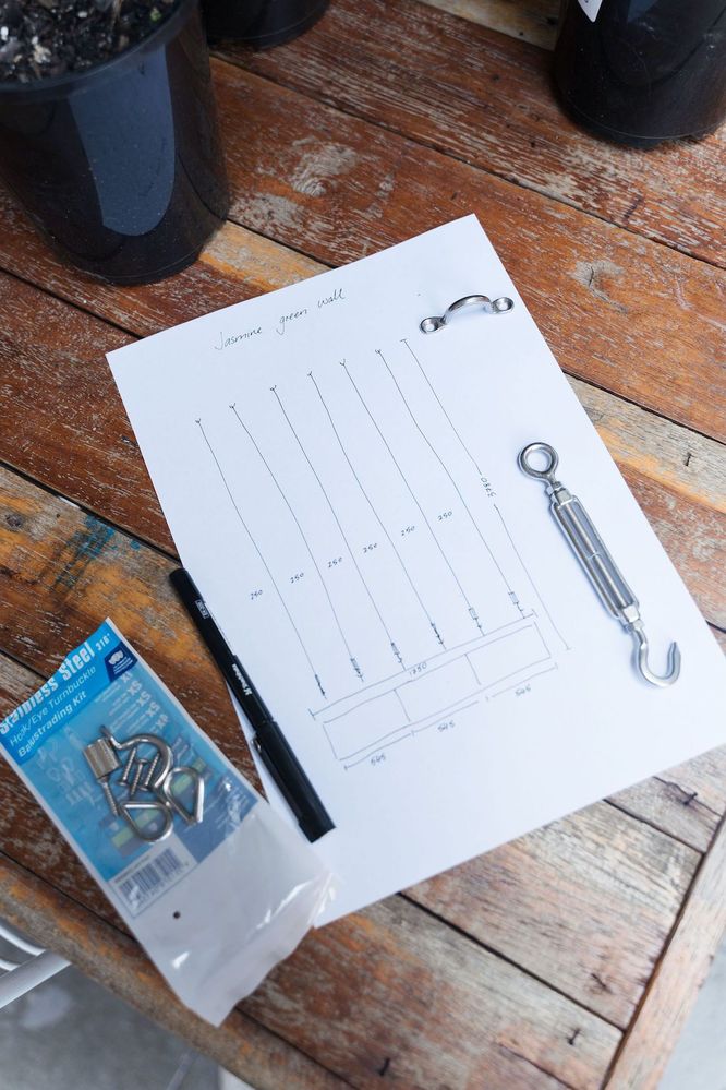 Newly-planted-jasmine.jpegThese are the materials I usedThese are the materials I usedJasmine-plan.jpegCut-wire-to-length.jpegAdd-hook-to-other-end.jpegAnd secured these to the wall using the brackets from the balustrade kitsAnd secured these to the wall using the brackets from the balustrade kitsHere's a close up of how it fixes to the wallHere's a close up of how it fixes to the wallAnd this is the final resultAnd this is the final resultI then added some pots in front and planted my jasmineI then added some pots in front and planted my jasmineIt's taking off and I can't wait until the full wall is floweringIt's taking off and I can't wait until the full wall is flowering