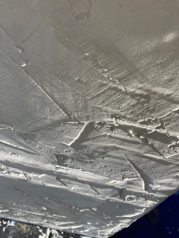Applied 1 thick coat of Dulux stone effect paint with a paint brush using a cross over technique - let dry then applied a generous amount of polyfilla over the entire podium.