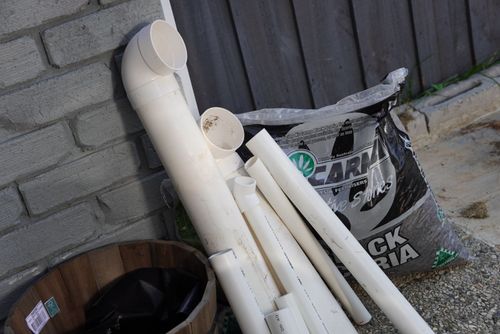 We already had several pieces of 90mm PVC Pipe and the 90º elbows to go with them as well as some waterproof sheeting that my wife uses for her planter boxes. So it was a trip to Bunnings where I purchased the following: