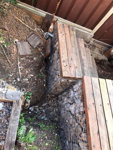 If you look to the right of the steps there is a path there, well a goat track atm. I have several gabion cages that are going to go between the base of some posts for a privacy screen next to the fence to allow water to still flow but also hold the soil. Ive drawn up plans just nervous to start :smile: If I have rocks I can still build more! (Am running out :surprised: but still have a few hidden piles lol)