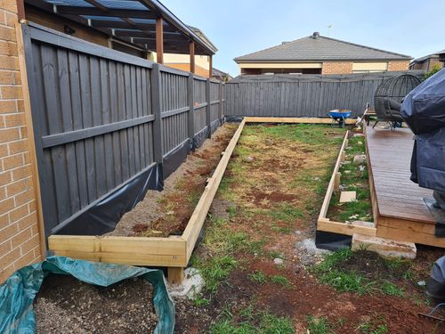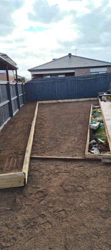 Spent the time finishing out backyard over this time at home. Started with framing off the area with a nice garden bed and an extra decking step. Followed by 20 metres of Garden Soil to fill the area. Planting 20 Lilly Pillys and finishing it off with our beautiful new Sir Walter lawn Lots of digging, planting and hard work is getting there. More to come.