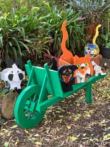 Thank you so much for sharing a diagram and pictures of your half wheelbarrow. It is indeed a very versatile plant stand as you've clearly demonstrated with the addition of friendly passengers. Would it be possible for you to give a brief description of how the wheel was assembled? Any extra information you can share with our members would be much appreciated.