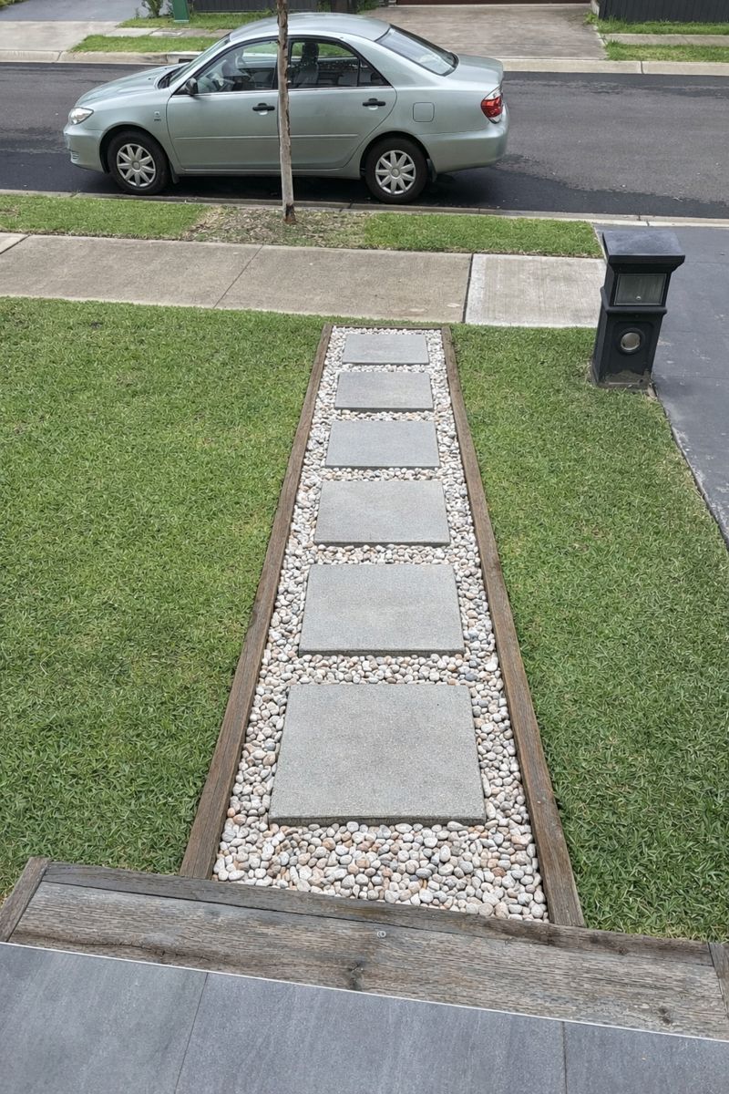 You would then create a border to help keep the stones in place using some edging. The example above uses timber sleepers, which would be a robust solution. They could be fixed in place using sleeper pegs or stakes.