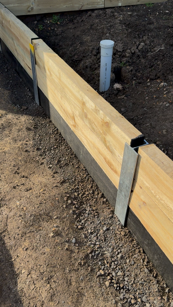 As for the post alignment, for a 600mm high retaining wall, setting the posts perfectly vertical is generally acceptable and widely done—especially if your drainage is well managed and you’re not retaining heavy loads behind the wall. However, a slight backward tilt (known as a "batter") of about 5–10mm per 100mm of wall height can help resist soil pressure and maintain a straighter line over time, particularly in clay soils or if the wall will be exposed to a lot of moisture. It's not mandatory for a wall of this height, but it can be a helpful precaution.