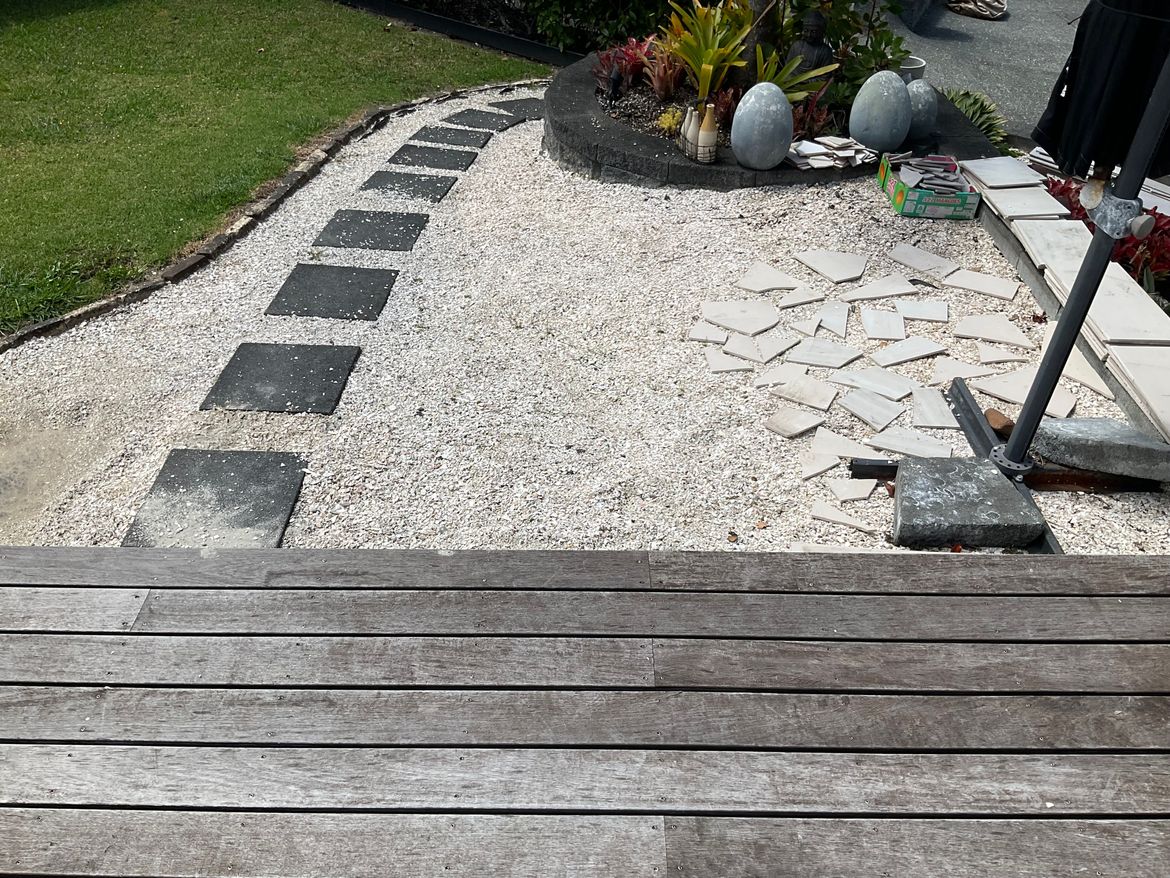 Hi just wanting to know the best products to use to form a pathway with broken tiles that has a base of broken shells.