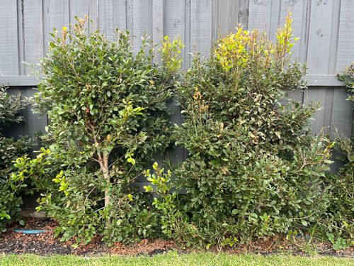 Living in Melbourne Victoria and trying to grow a hedge along our fence line. Trees are approx 5 years old. Some doing great other struggling. Left them through spring as suggested to thicken up which some have but some haven’t. Just not sure whether to continue to leave them til just before next spring and trim or what I should do. Some have flowered and now have berries and are looking a little sparse up top. Others have some patchy holes and some have produced small amount of new growth to the top only even after tip pruning. Any suggestions welcome, will attach photos of the ones that I’m not sure of/struggling.
