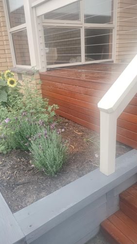 Can you take a photo showing where the garden bed sits in relation to the concrete foundation of the house?
