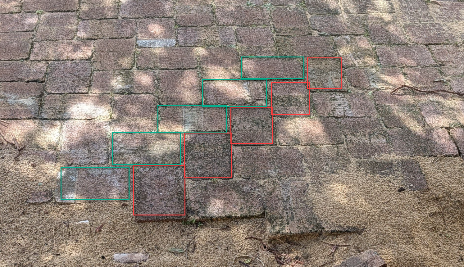 You'll notice there are two main shapes of pavers that follow a consistent pattern.