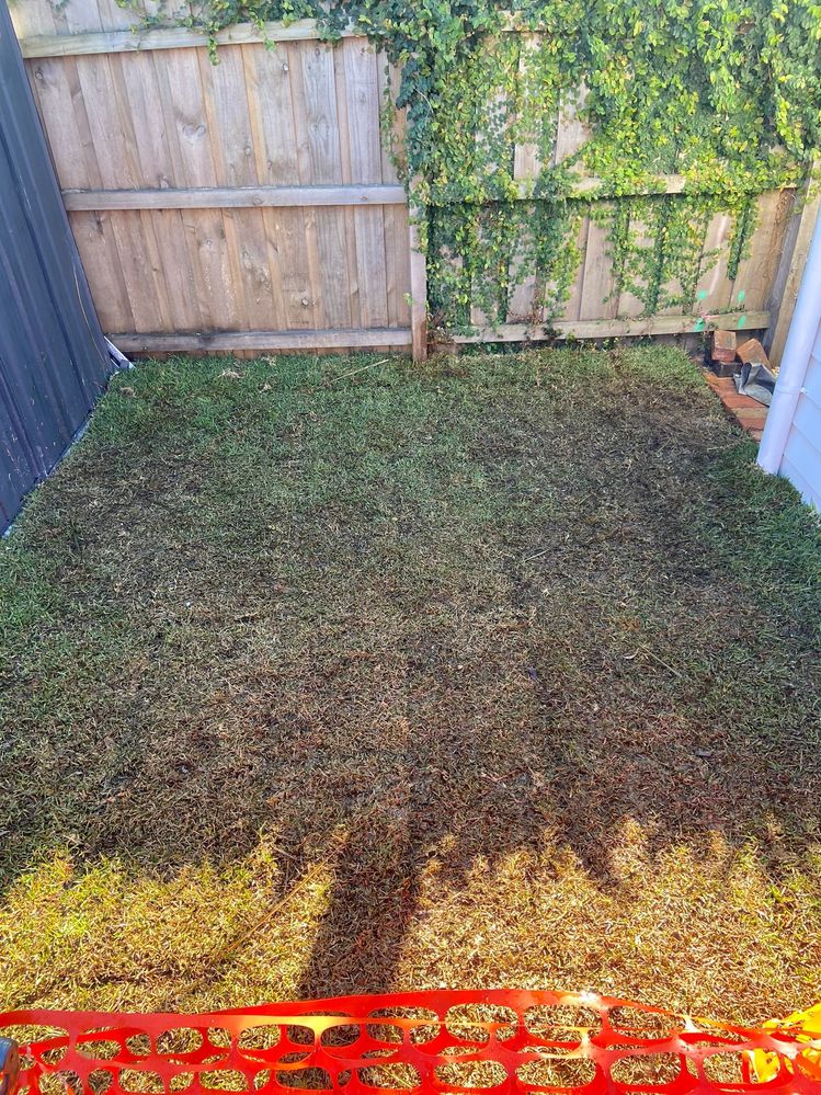 My suggestion is to essentially wait and see. Buffalo is a very resilient grass type, and as the warmer months kick in, it should start to grow and will bounce back well. You might like to apply a liquid fertiliser such as this Liquid Fertiliser Lawn Food once the temperatures start to heat up to ensure the lawn has the right nutrients available to promote growth.