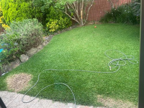 The buffalo grass will grow across by itself when the patchy area is fixed.