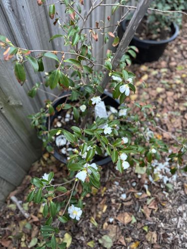 What’s happened to this camelia. It’s gone from having lots of buds and leaves and flowers to losing leaves flowers and vitality.