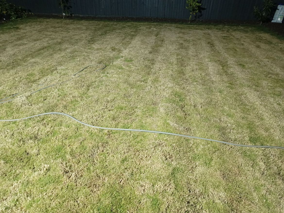 However, I've noticed that while not all parts of the lawn are brown, there is a high percentage showing signs of browning, particularly noticeable when cutting at a height of 55mm. Interestingly, some areas still show a bit of green grass peeking through.