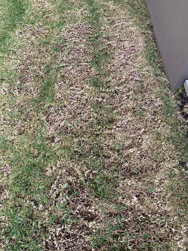 The stripes would be from my mower I have a commercial grade Honda wide deck and it is heavy and on all my grass it has the stripes which look good if the lawn is not buggered lol..no everything is level and that grass has been down now for 18yrs and no irrigation in that area. until the floods I had no problem same mower same level of grass has always been plush and green and super healthy I use fertiliser 4 times a year the original sir Walter fertiliser and it also gets sea soil lawn a couple times a year. This all happened after the floods. I guess it is some sort of fungus from whatever got washed through in the floods. I will let it go back to being a bit longer again to protect it and wait till spring and if still not good I will take out and replace with new grass