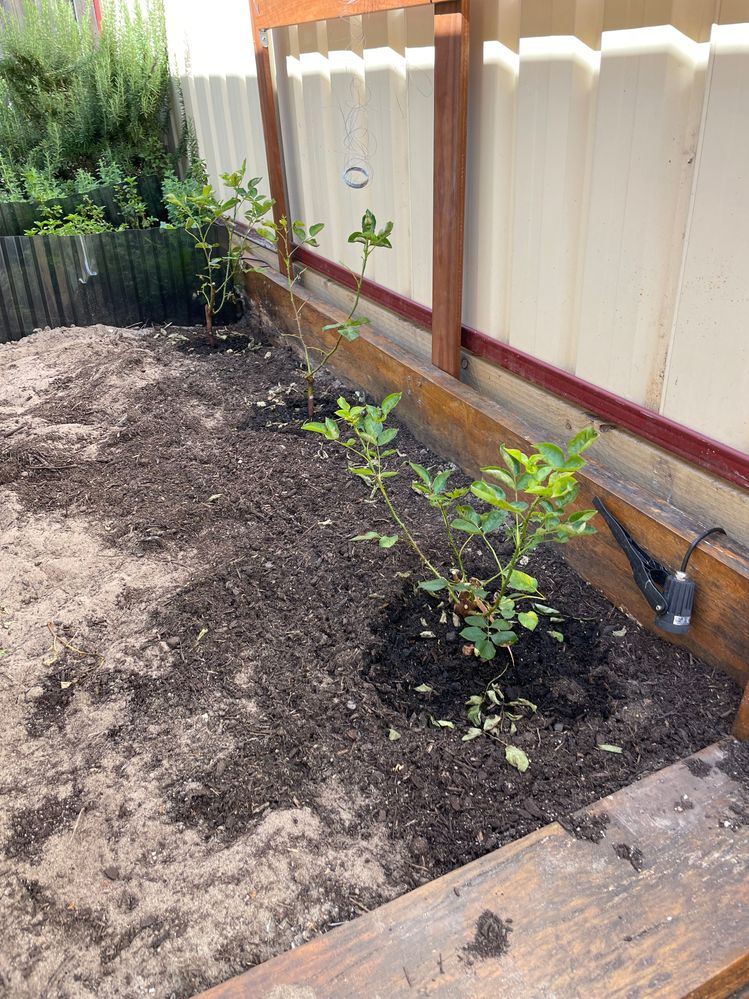 It seems that the roses are under significant stress, likely due to a combination of factors, including the insect infestation and possibly the planting process. Roses should ideally be healthy when planted, and it’s quite difficult to reverse problems like this if the plants were not in good condition to begin with. If these roses were purchased from Bunnings, I would strongly recommend taking advantage of our Perfect Plant Promise. If you have proof of purchase, you could return the plants for a replacement or a refund, as they should not be struggling like this so soon after purchase.