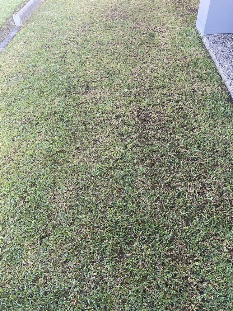 The brown patches on your buffalo lawn could be due to a few possible causes, especially given the mix of healthy and affected areas. Given your recent lawn starter and seaweed solution application, the issue is less likely to be nutrient-related and more likely linked to soil conditions, pests, or disease. One common cause in your area is lawn grub or armyworm, which can cause significant damage to buffalo grass.