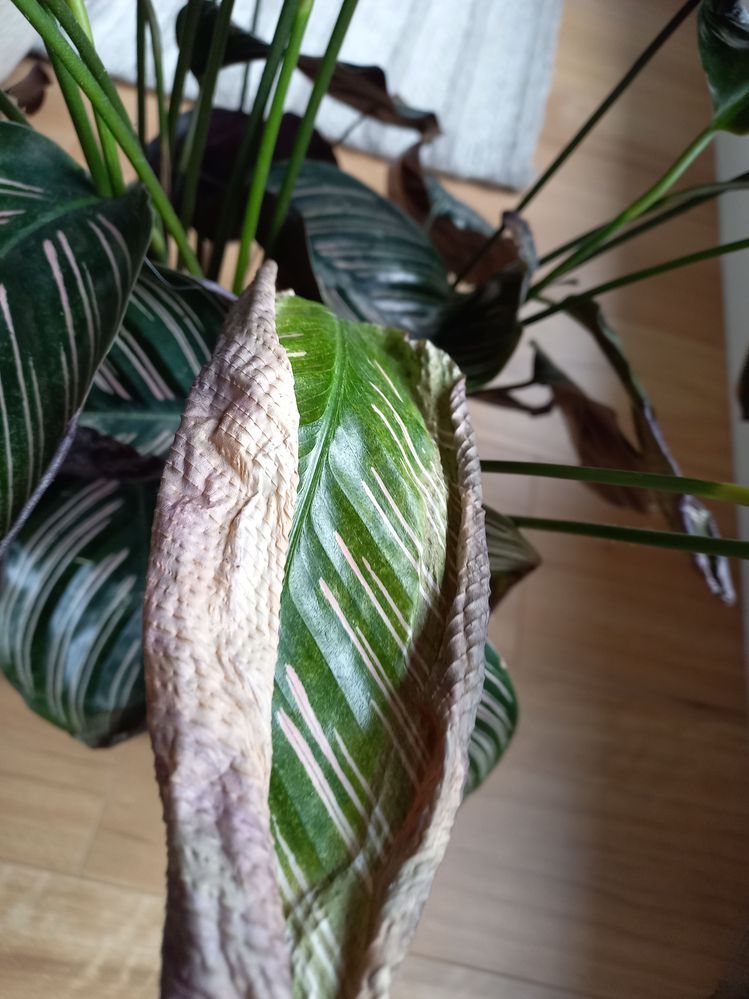 I bought this Calathea a while ago and for some time, it looked just beautiful, but gradually leaves started to curl and look dry, some new growth turned out black and right now, it just doesn't seem to be doing fine.