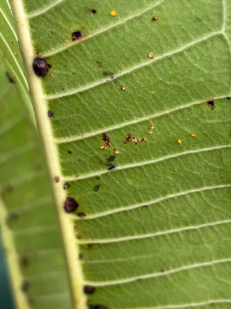 What should I use to cure our frangipani plant as it has black dots as per attached photos