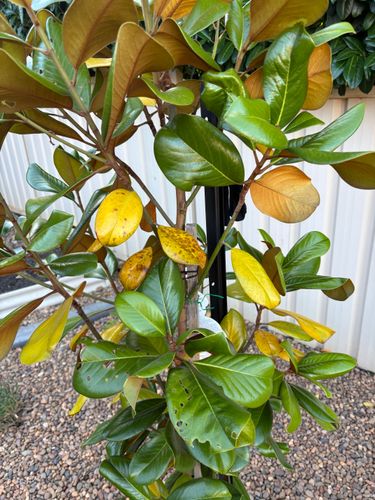 If you continue to see rapid yellowing or if the new growth becomes affected, we might need to reassess soil drainage or consider a root issue, but for now, your magnolia looks like it's on a fairly typical settling-in path. Let me know if you’ve added any soil improvers or if you’ve mulched already—that can help tailor the next steps more accurately.