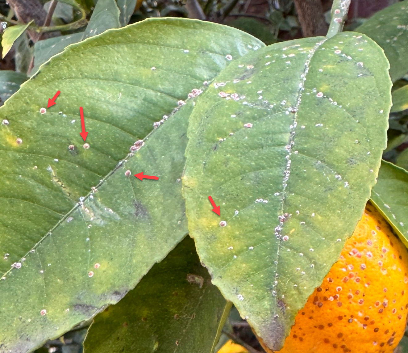 These bumps on the leaves are likely caused by scale insects. Scale insects are tiny sap-sucking pests that attach themselves to leaves, stems, and sometimes fruit. They look like small bumps or shells stuck to the plant surface. They don’t tend to move around much because they cover themselves with a hard, waxy coating for protection. They’re common on citrus, but manageable. I'd suggest applying Seasol EarthCare White Oil Insect Spray to any leaves or fruit where you see them. It can be applied to the fruit, but if you plan on eating it, I would give it a good wash beforehand.
