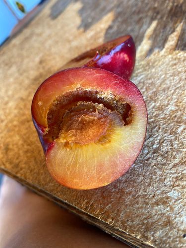 Similarly to @Jewelleryrescue, I couldn't say what is causing the issue without further investigation. Some photos of a full plum and the tree that they came from would certainly help.