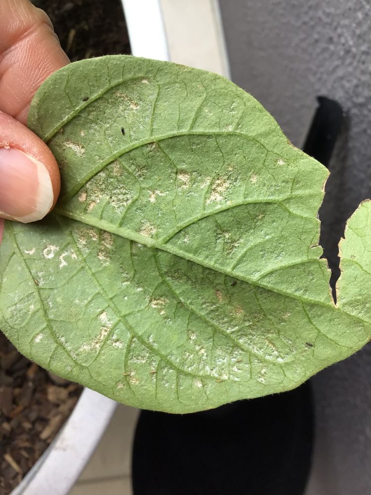 I also added a mini cucumber and some pot friendly eggplants at the same time, and they have concurrently developed white spots on their leaves as well over the same timeframe. I notice my parsley is now also developing some discolouration. Interestingly the tomato and kale planted alongside are presently unaffected.