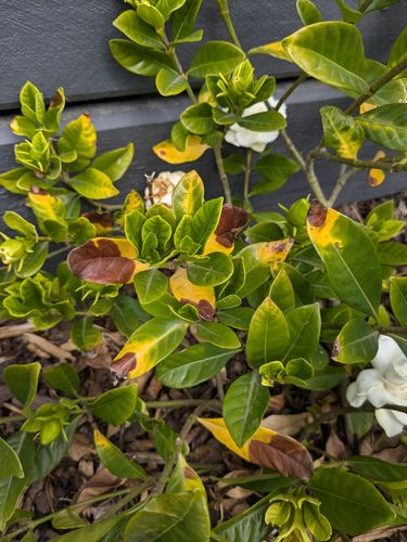 A few of my gardenias (2 years old) are yellowing. They are in full afternoon sun however we are in a frost prone area of Melbourne. I'm wondering if this could be from the sun or frost damage or too much water?