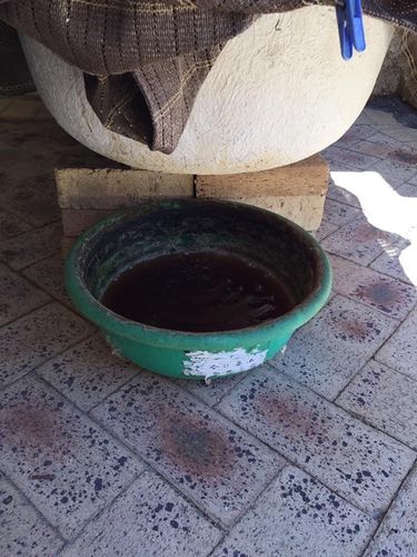 So our bathtub worm farm ( one of three ) on the edge of the carport was getting hot morning sun and unfortunately the worms were not impressed. We emptied out the tub full of worm poo ( Castings ) ( there were a few worms left ) as it was heavy to move with Castings and blue metal at the base of the tub for drainage.