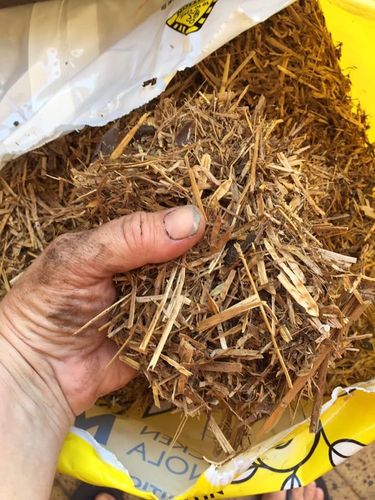 Once moved and back onto bricks we replaced the Castings back into the tub as they will provide nutrients to the plants.