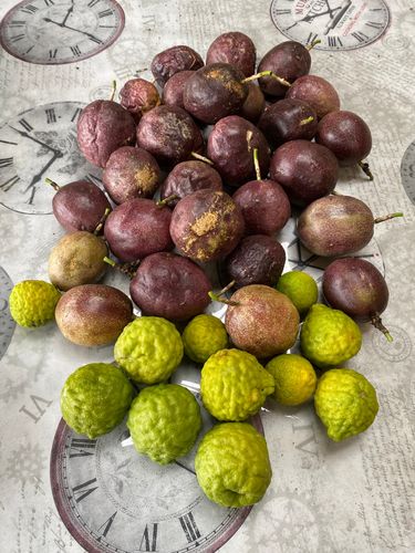 Don’t let your fruits go to waste. If you see them on the ground, pick them up. I picked up all of these Passionfruit and Kaffir limes from the ground the other day.