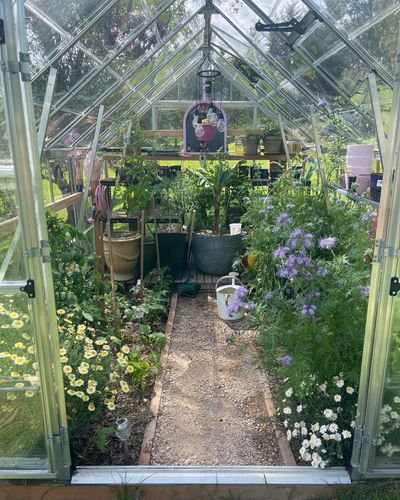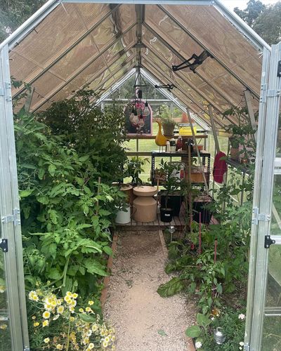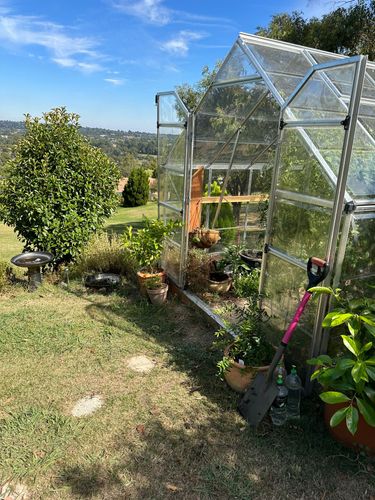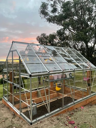 Hi everyone we’ve been very busy at Lisa’s Garden! Now that the warmer months have finished and we’ve had a bit of rain, we thought it was time to construct our Maze 2.4m x 3.6m polycarbonate greenhouse! The area we’ve chosen is close to the edible garden paved area and raised garden bed. We recently extended the raised bed but just two sleepers high( will fence it with trailer sides to keep out Audrey🤣) We haven’t levelled off the area for greenhouse, but have built up with Sienna sleepers, which gets rid of an ugly corner and takes advantage of the views.