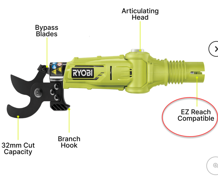 I can confirm that the Ryobi One+ 18V 32mm Cordless Bypass Telescopic Pole Lopper Attachment is compatible with the EZ Reach system.