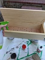 I used my father-in-laws Ryobi Tool Rack to stabilise my planter upside down while I put its feet onWith the box upside down, position the feet equal distances in from the outside edges - MARK. First, drill a clearance hole in the middle of the foot and mark through the hole onto the bottom; drill a small pilot hole; glue and screw all 4 feet into place – the clearance and pilot holes make it easy for the screw to go through.